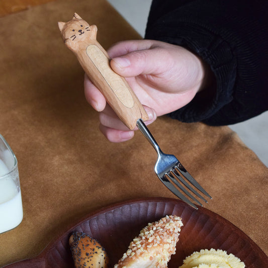 Cute Kitten Hand-Carved Spoon and Fork/HandCarved/Gifts