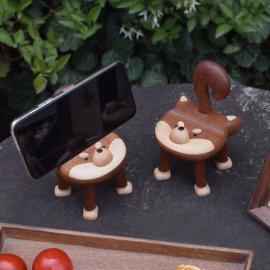Shiba Inu Wooden Phone Stand - Adorable Desk Organizer for Smartphone & Tablet