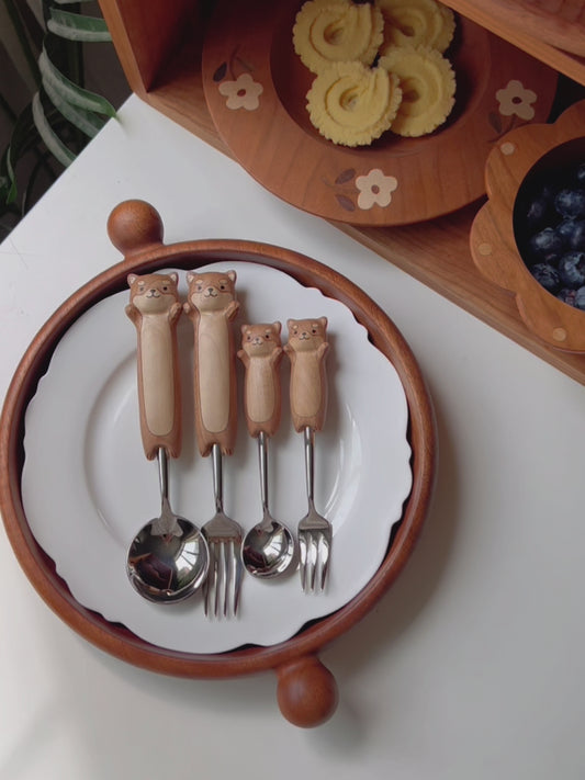 Cute Kitten Hand-Carved Spoon and Fork/HandCarved/Gifts