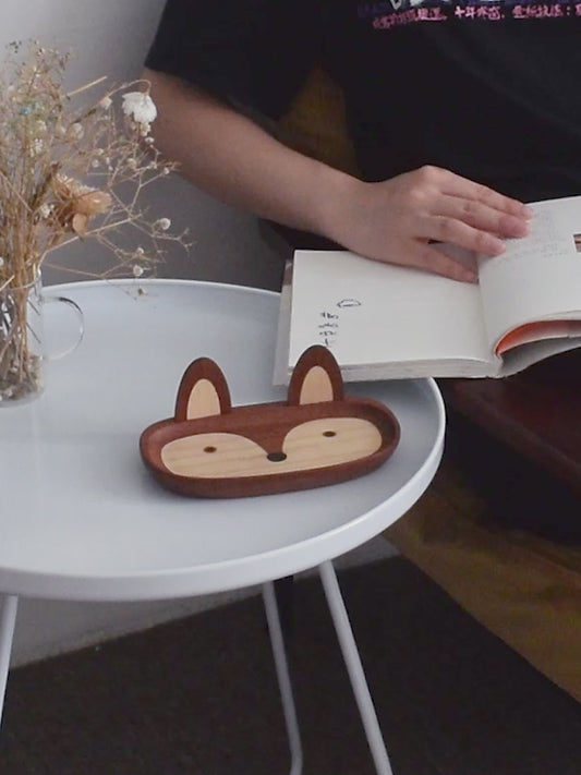 Fox Wooden Glasses Tray - Cute Desk Organizer & Catch-All