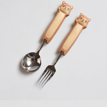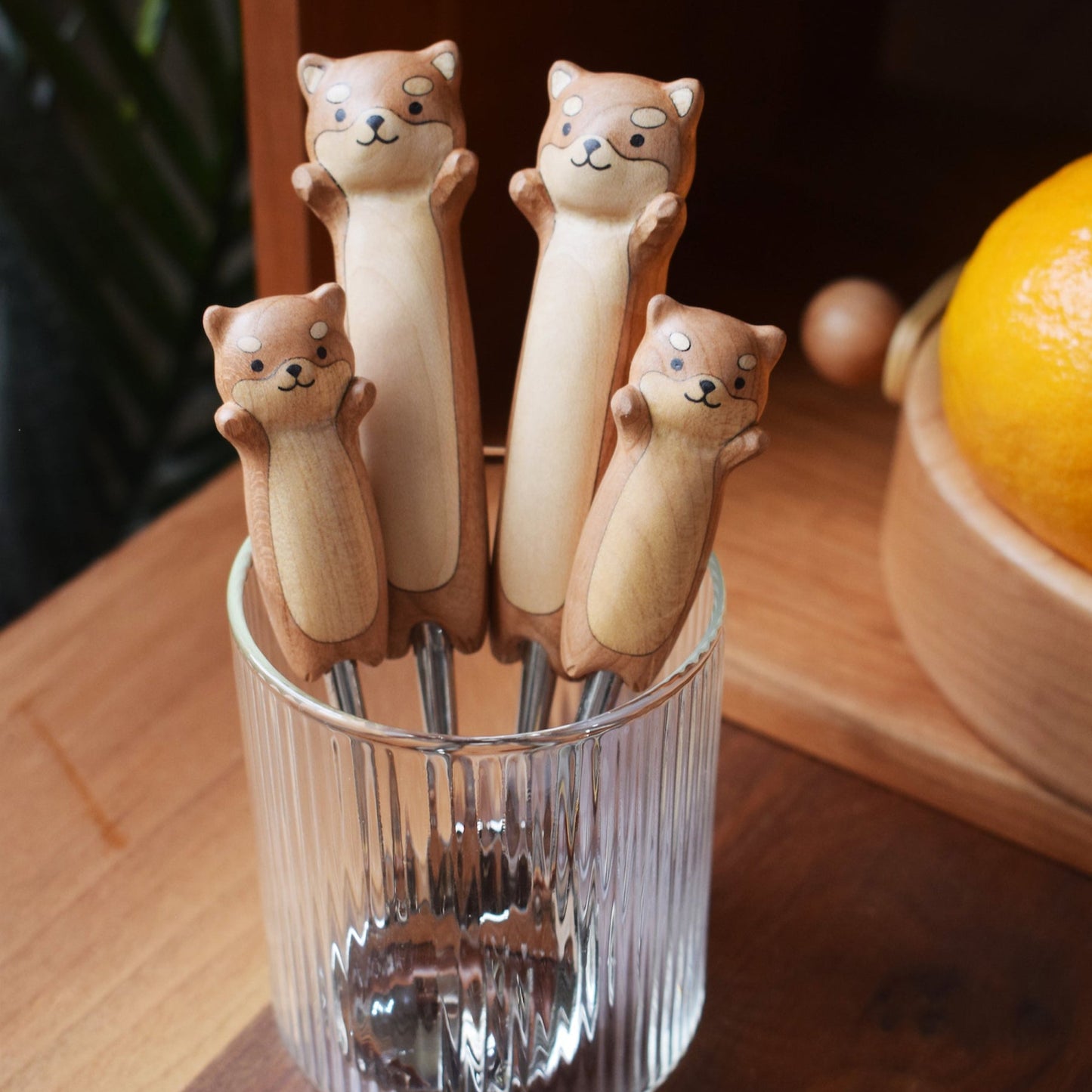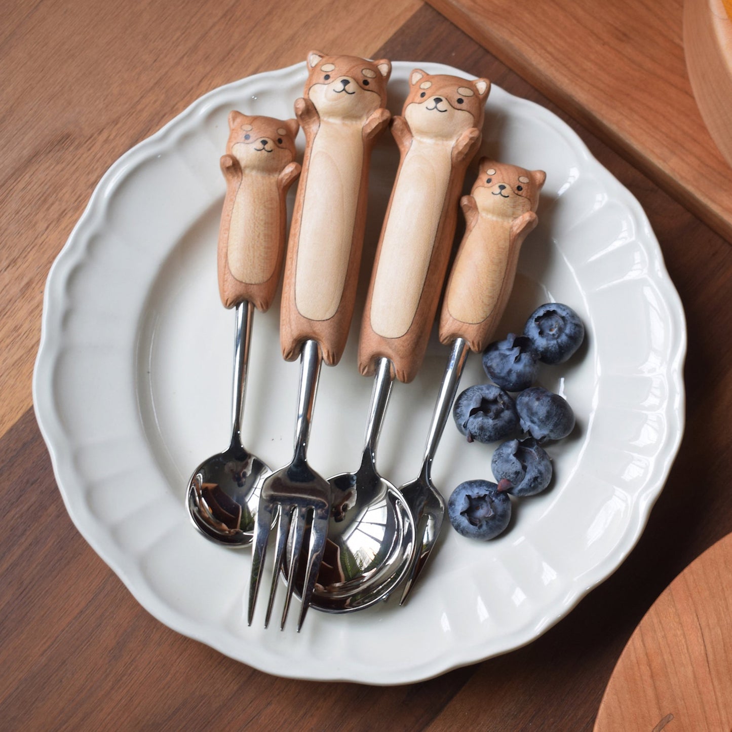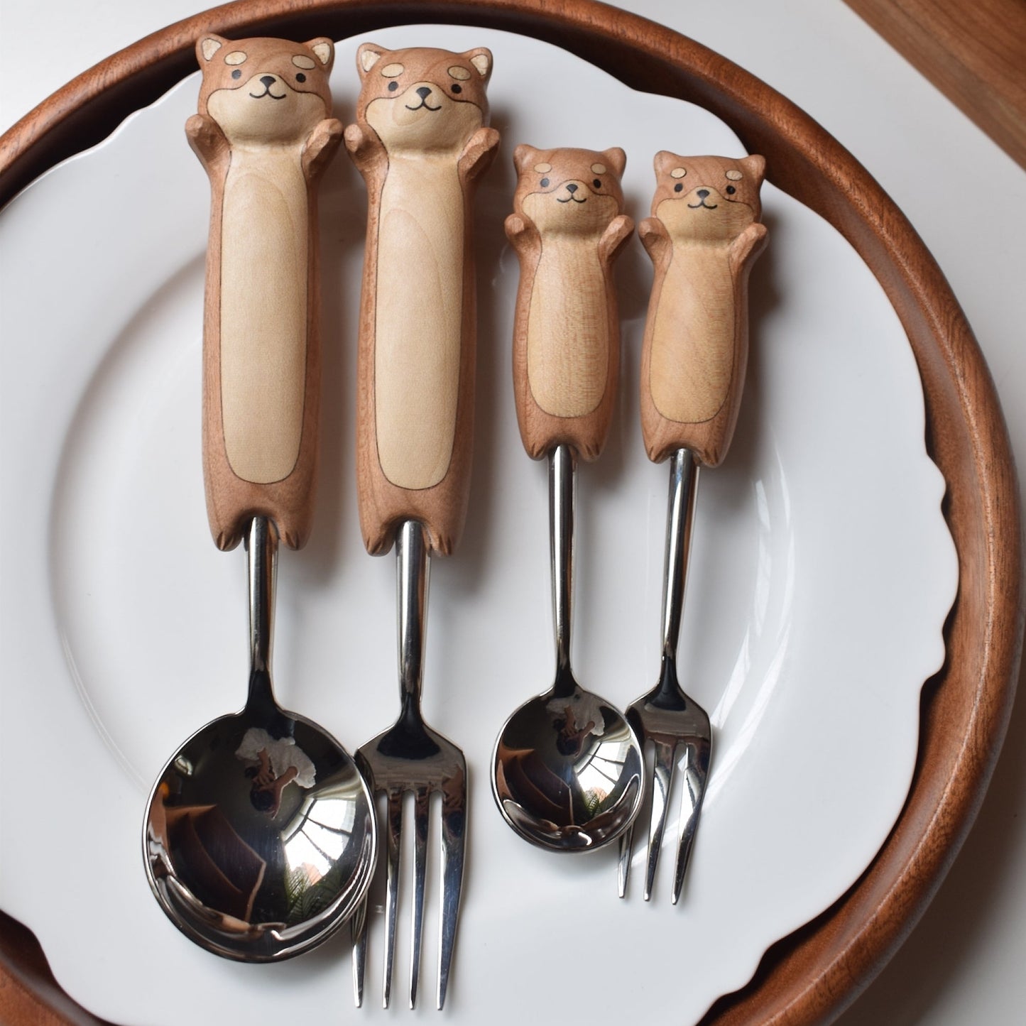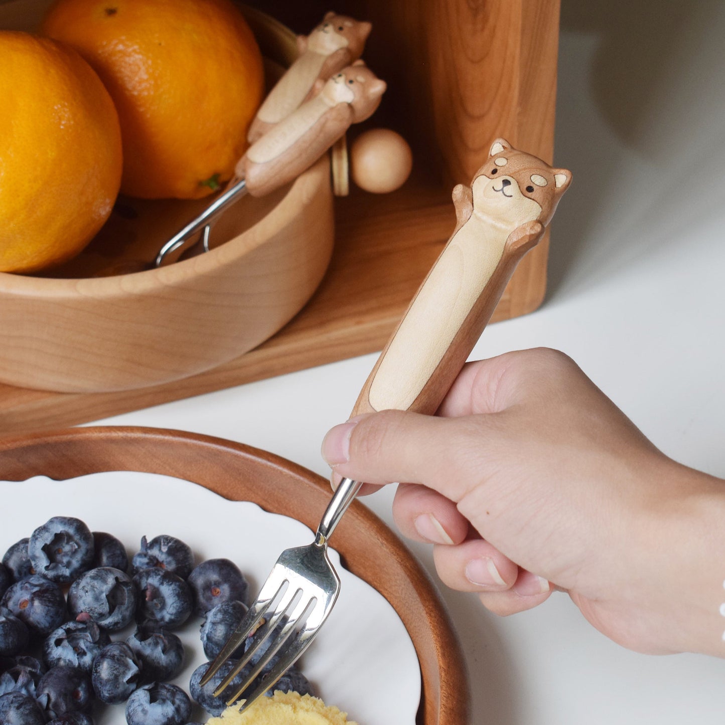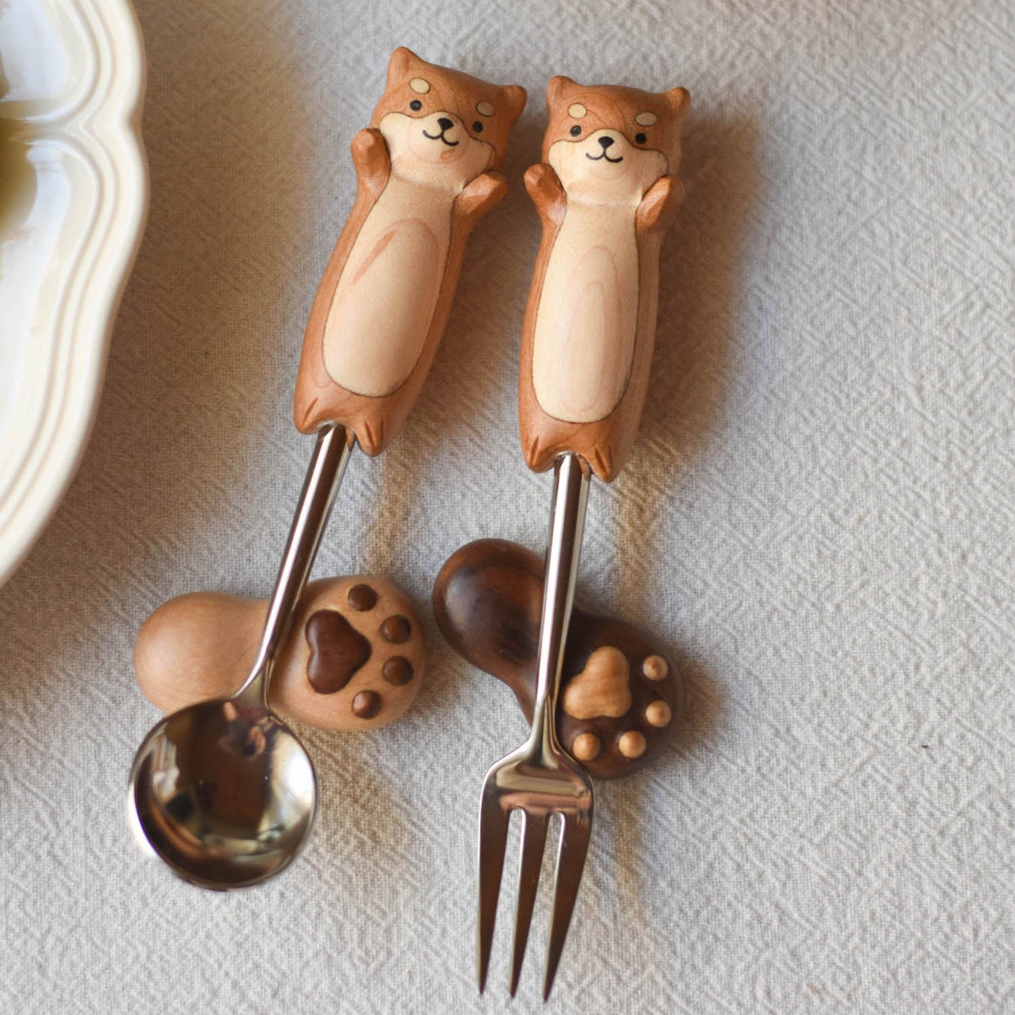 Adorable Hand-Carved Shiba Inu Spoon and Fork | Kitchen Décor & Gifts
