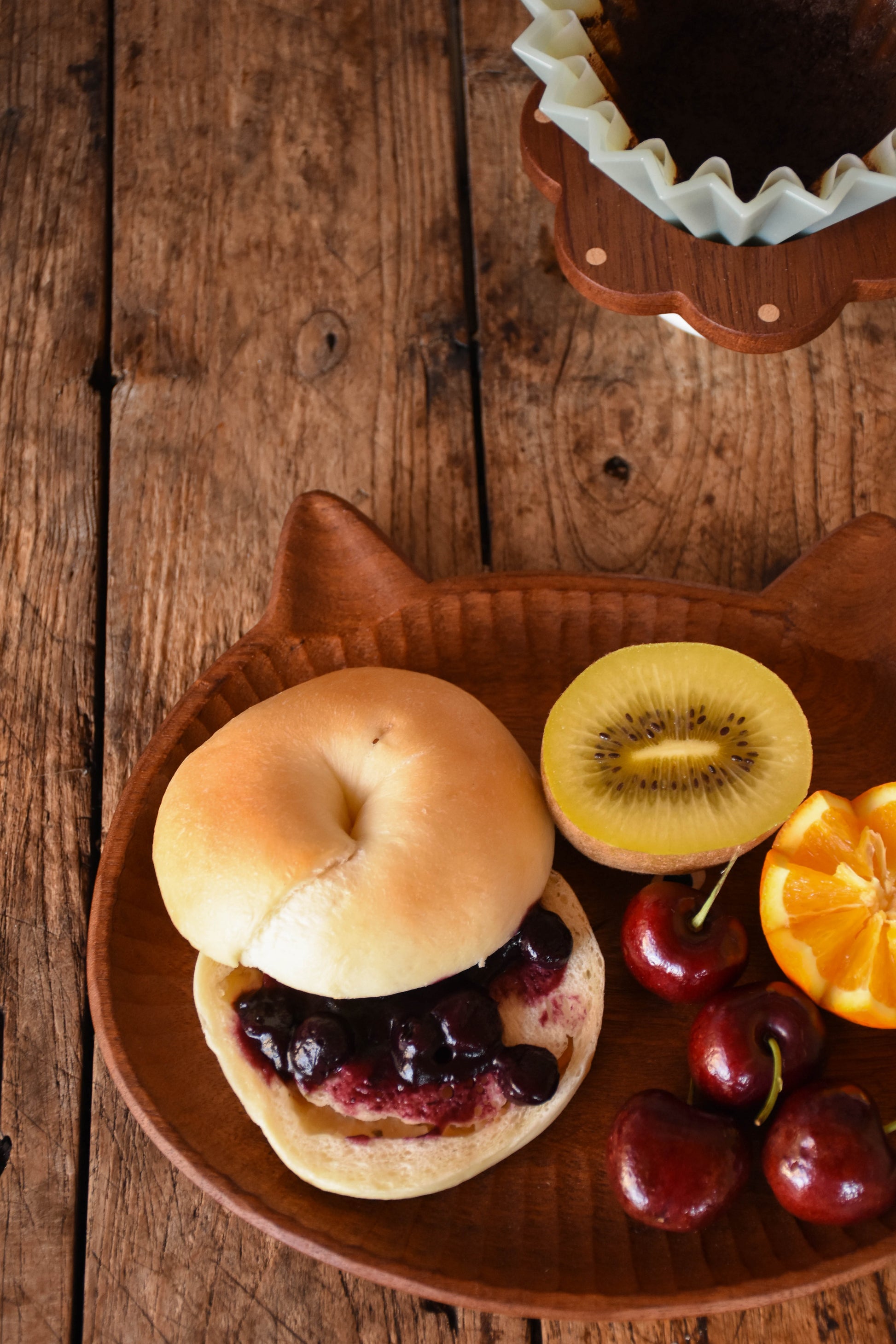 Hand-Carved Small-Eyes Cat Wooden Plate – Home Decor
